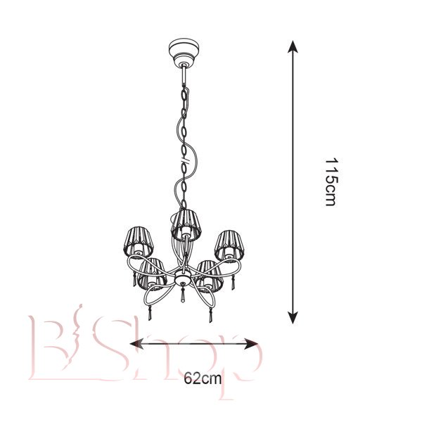 Кількість ламп: 5. Тип цоколя: E14. Висота (див): 115. Ширина (див): 62. Потужність лампи (Вт): 40.