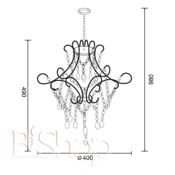 Кількість ламп: 3. Тип цоколя: E14. Висота (див): 98. Потужність лампи (Вт): 60. Діаметр (див): 40.