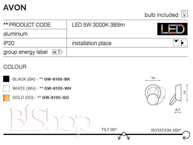 Кількість ламп: 1. Тип цоколя: LED. Висота (див): 14. Глибина (див): 6.7. Потужність лампи (Вт): 5.