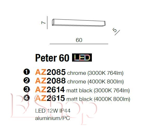 Настінний світильник Azzardo AZ2085 Peter 60 3000 (chrome) (LIN-3001-60-CH) (16016)