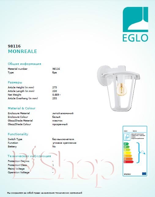 Настінний світильник Eglo 98116 MONREALE (22326)