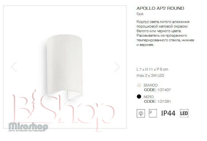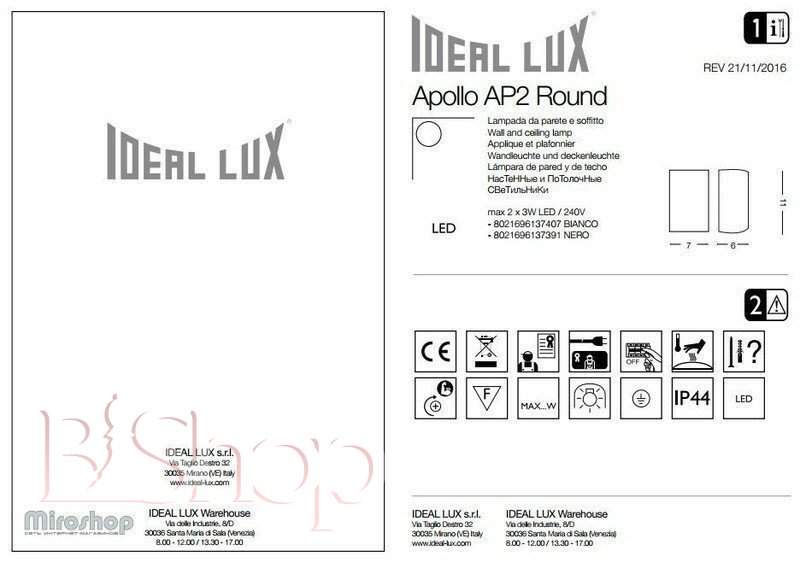 Настінний світильник Ideal Lux APOLLO AP2 ROUND BIANCO (137407) (94049)