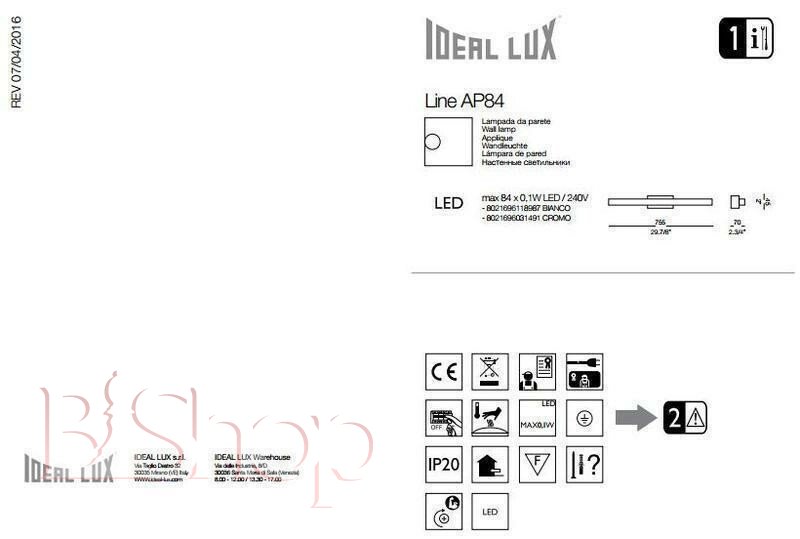 Настінний світильник Ideal Lux LINE AP84 BIANCO (118987) (88034)