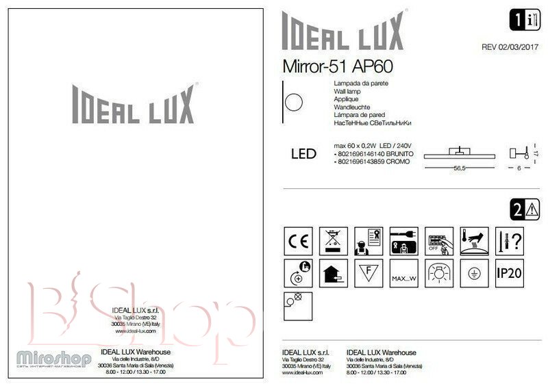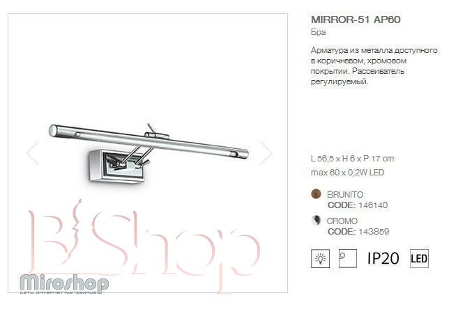 Настінний світильник Ideal Lux MIRROR-51 AP60 CROMO (143859) (93988)