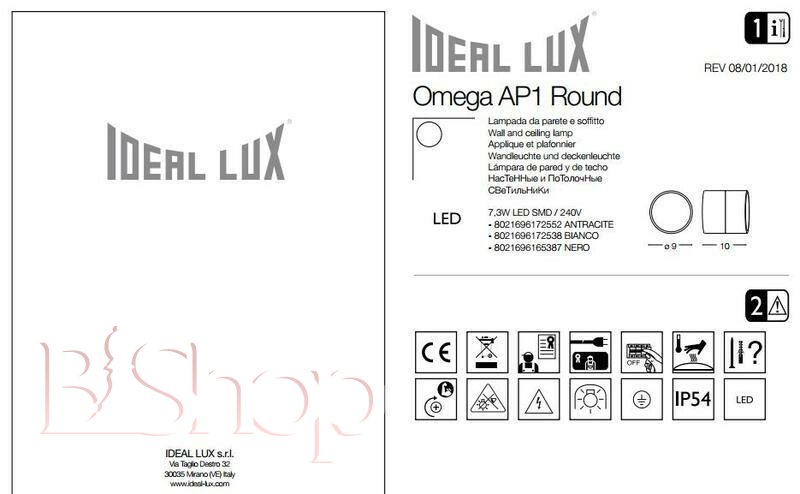 Кількість ламп: 1. Тип цоколя: LED. Глибина (см): 10. Потужність лампи (Вт): 7.3. Діаметр (див): 9.