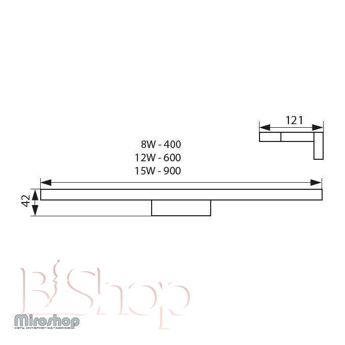 Кількість ламп: 1. Тип цоколя: LED. Висота (див): 4.2. Глибина (див): 12.1. Потужність лампи (Вт): 8. Довжина (див): 40.