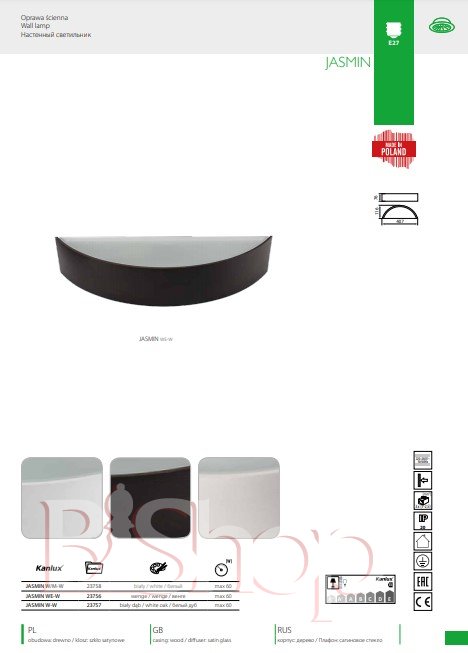 Настінний світильник Kanlux JASMIN WE-W (23756) (91401)