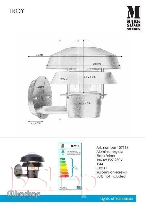 Кількість ламп: 1. Тип цоколя: E27. Висота (див): 22. Ширина (див): 20. Глибина (див): 25. Потужність лампи (Вт): 60.