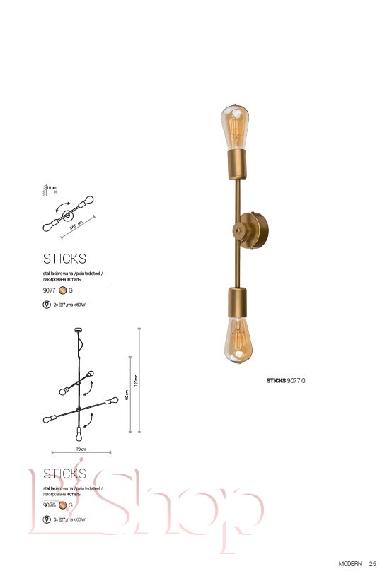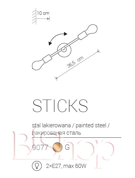 Кількість ламп: 2. Тип цоколя: E27. Висота (див): 36.5. Глибина (див): 10. Потужність лампи (Вт): 60.