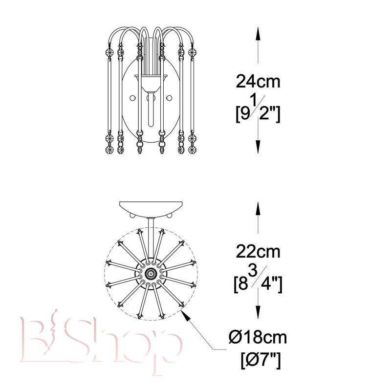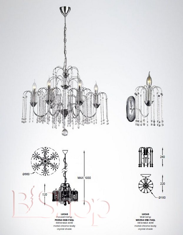 Кількість ламп: 1. Тип цоколя: E14. Висота (див): 24. Ширина (див): 18. Потужність лампи (Вт): 40.
