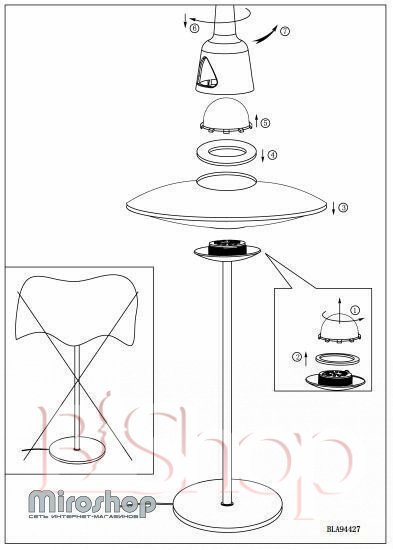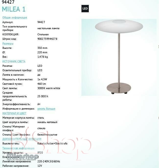 Кількість ламп: 1. Тип цоколя: LED. Висота (див): 35. Потужність лампи (Вт): 4. Діаметр (див): 22.