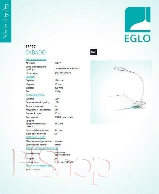 Кількість ламп: 1. Тип цоколя: LED. Висота (див): 42. Ширина (див): 12. Потужність лампи (Вт): 3. Довжина (див): 6.5.
