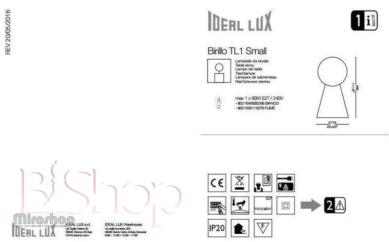 Настільна лампа Ideal Lux BIRILLO TL1 SMALL BIANCO (000268) (48296)