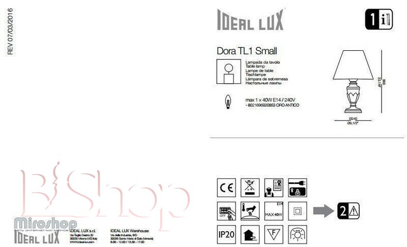Настільна лампа Ideal Lux DORA TL1 SMALL (020853) (46117)