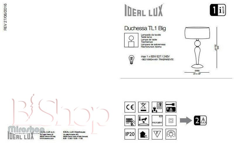 Настільна лампа Ideal Lux DUCHESSA TL1 BIG (044491) (46194)