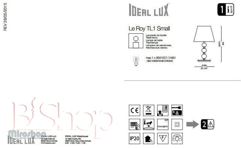 Настільна лампа Ideal Lux LE ROY TL1 SMALL (073439) (56289)