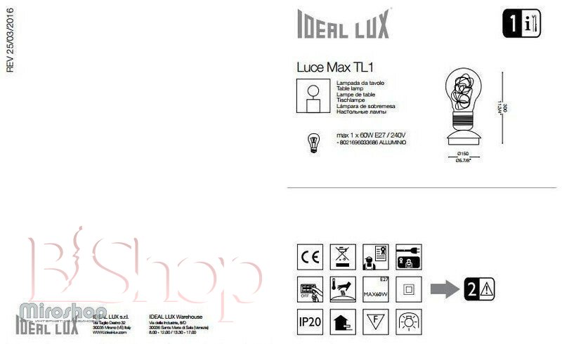 Настільна лампа Ideal Lux LUCE MAX TL1 (033686) (48610)