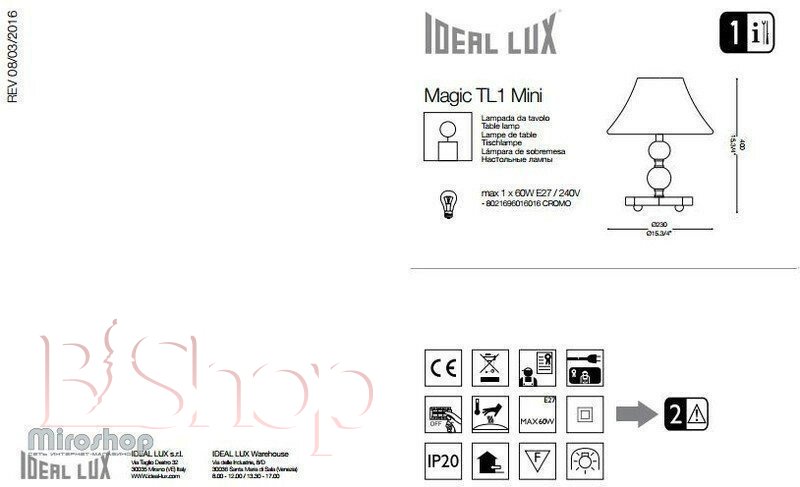 Настільна лампа Ideal Lux MAGIC TL1 MINI (016016)