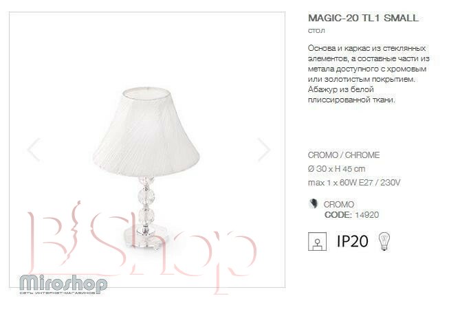 Настільна лампа Ideal Lux MAGIC TL1 SMALL (014920)
