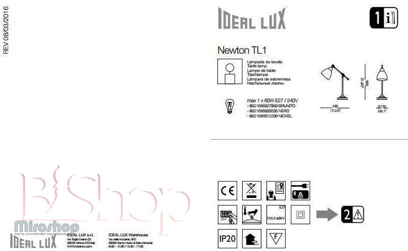 Настільна лампа Ideal Lux NEWTON TL1 NERO (003535) (81300)