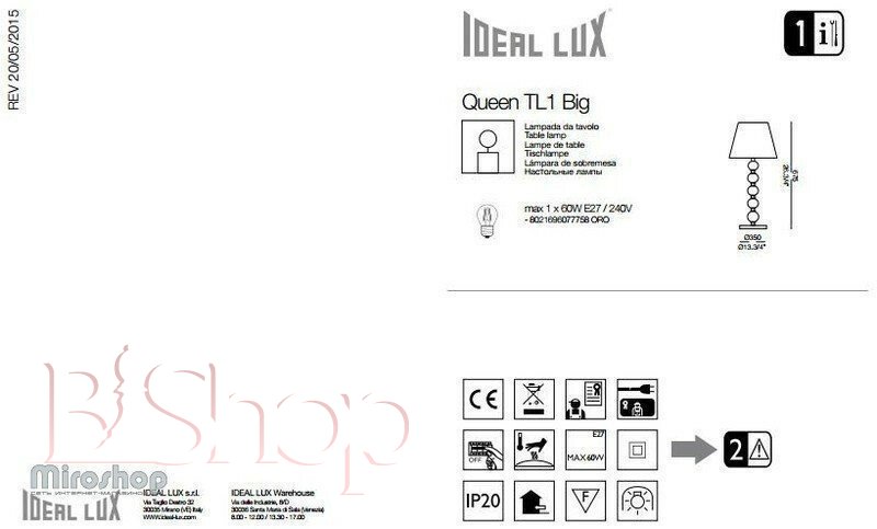 Настільна лампа Ideal Lux QUEEN TL1 BIG (077758) (56382)