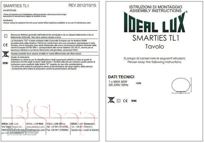 Ideal Lux (Італія)MS437152R- Потужність лампи (Вт): 60 Вт