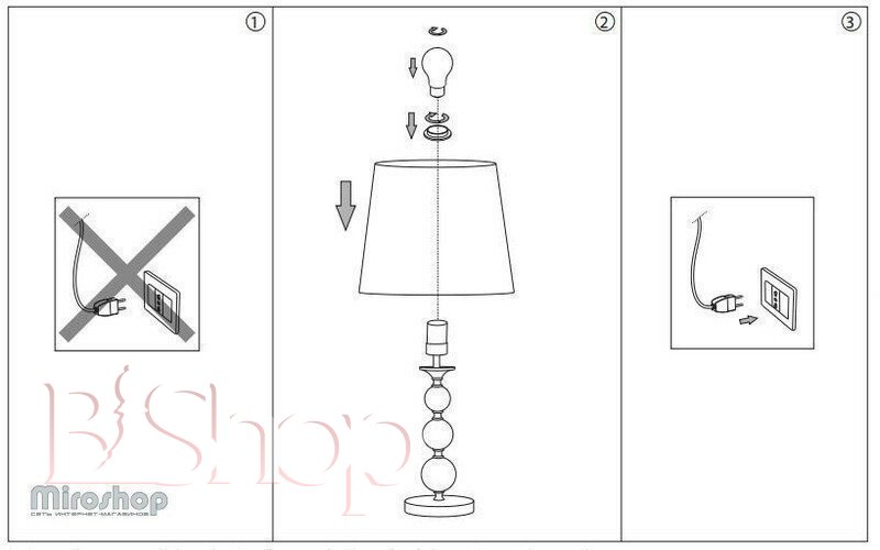 Кількість ламп: 1. Тип цоколя: E27. Висота (див): 50. Потужність лампи (Вт): 60. Діаметр (див): 24.