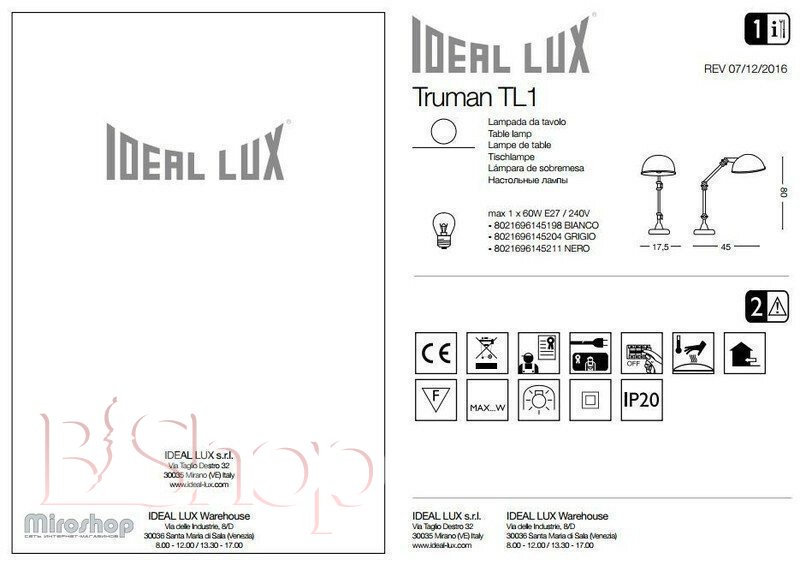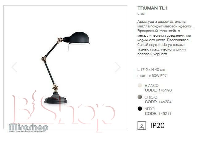 Настільна лампа Ideal Lux TRUMAN TL1 NERO (145211) (93969)