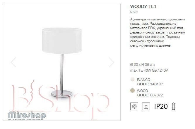 Настільна лампа Ideal Lux WOODY TL1 BIANCO (143187) (93971)