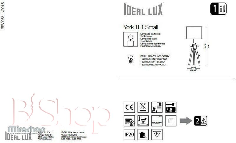 Настільна лампа Ideal Lux YORK TL1 SMALL WOOD (089782)