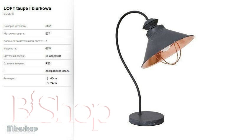 Настільна лампа Nowodvorski 5055 Loft Taupe
