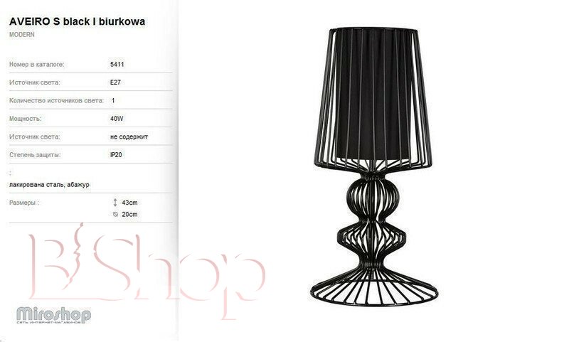 Настільна лампа Nowodvorski 5411 AVEIRO S Black (66616)