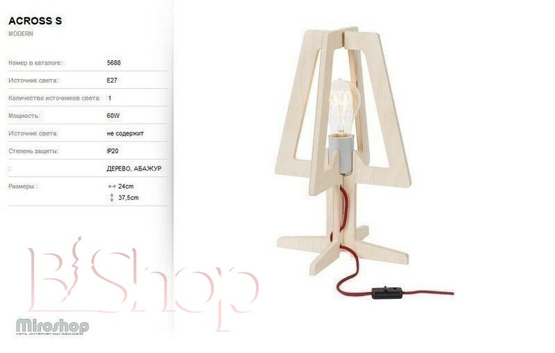 Кількість ламп: 1. Тип цоколя: E27. Висота (див): 37.5. Ширина (див): 24. Потужність лампи (Вт): 60.