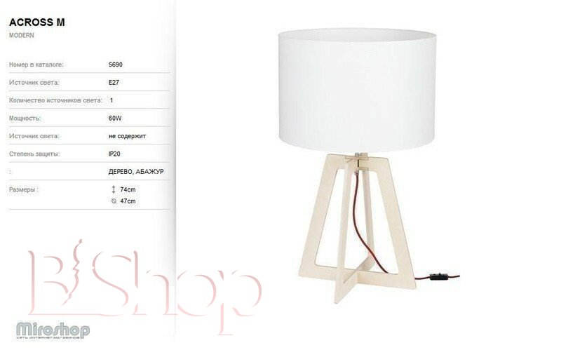 Кількість ламп: 1. Тип цоколя: E27. Висота (див): 74. Потужність лампи (Вт): 60. Діаметр (див): 47.