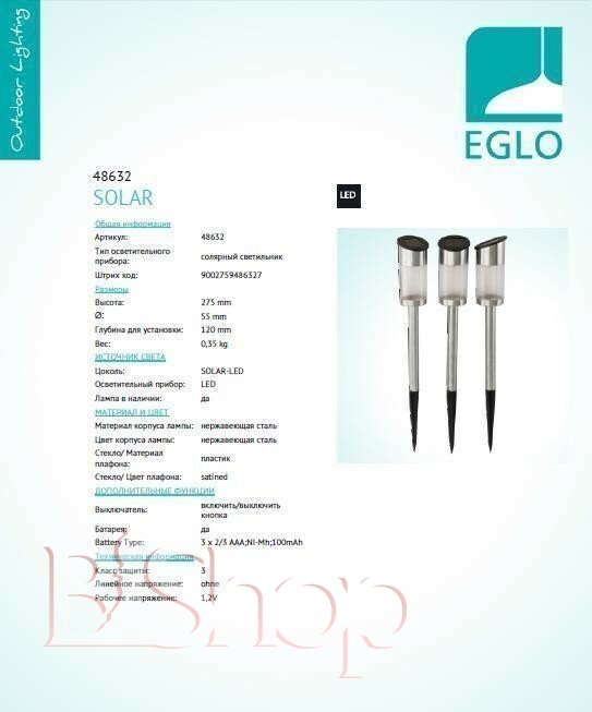 Кількість ламп: 3. Тип цоколя: LED. Висота (див): 27.5. Потужність лампи (Вт): 0.06. Діаметр (див): 5.5.