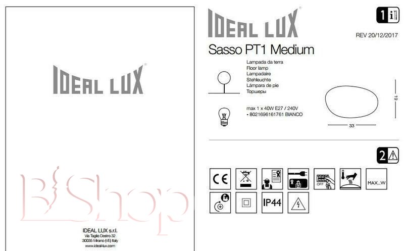 Кількість ламп: 1. Тип цоколя: E27. Висота (див): 19. Ширина (див): 25. Потужність лампи (Вт): 40. Довжина (див): 33.