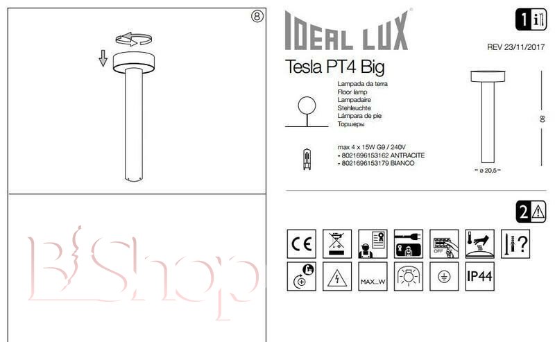 Парковий світильник Ideal Lux TESLA PT4 BIG BIANCO (153179) (13105)
