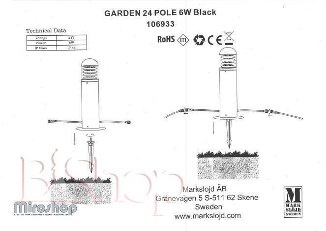 Парковий світильник Markslojd 106933 GARDEN (17942)