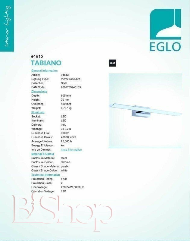 Кількість ламп: 3. Тип цоколя: LED. Висота (див): 7. Глибина (див): 13. Потужність лампи (Вт): 3.2. Довжина (див): 60.5.