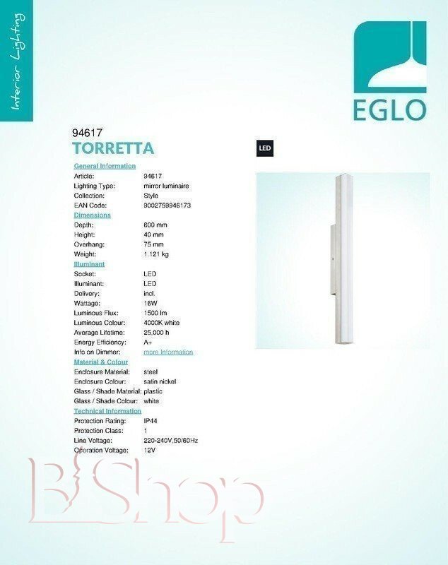 Кількість ламп: 1. Тип цоколя: LED. Висота (див): 40. Глибина (див): 7.5. Потужність лампи (Вт): 16. Довжина (див): 60.