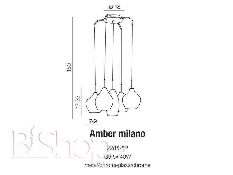 Підвісний світильник Azzardo AZ0722 Amber Milano (chrome) (2285-5P-CH) (15873)