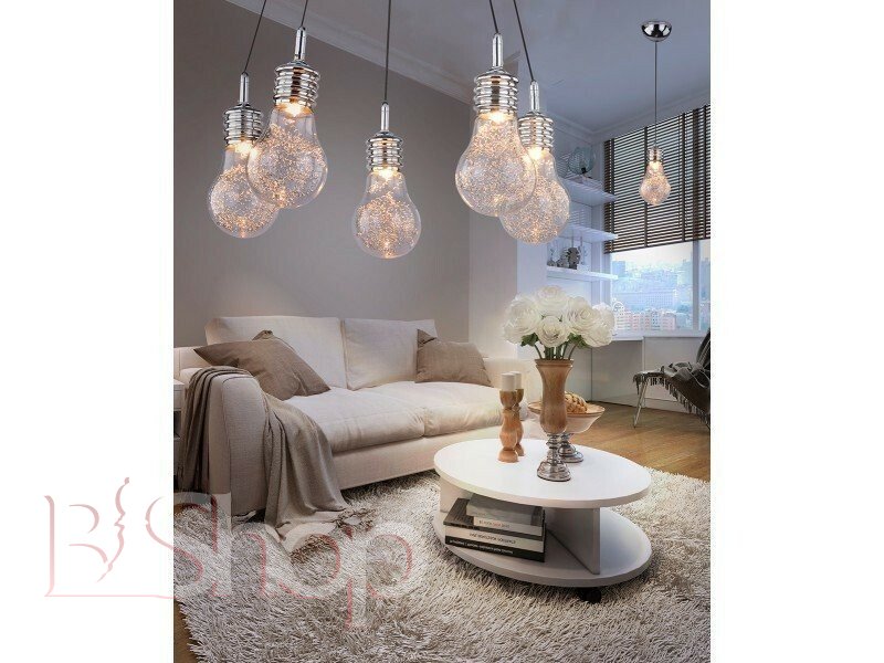 - Колір плафонів і підвісок: Прозорий