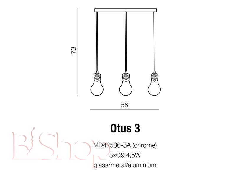 Кількість ламп: 3. Тип цоколя: G9. Висота (див): 173. Потужність лампи (Вт): 40. Довжина (див): 47.