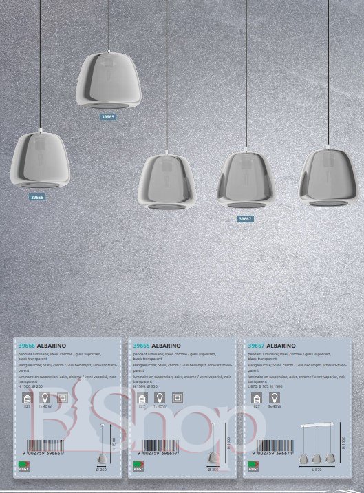 Кількість ламп: 1. Тип цоколя: E27. Висота (див): 150. Потужність лампи (Вт): 40. Діаметр (див): 26.