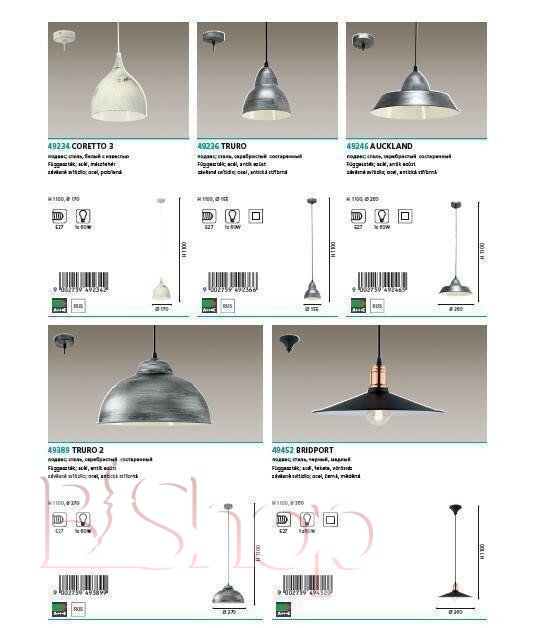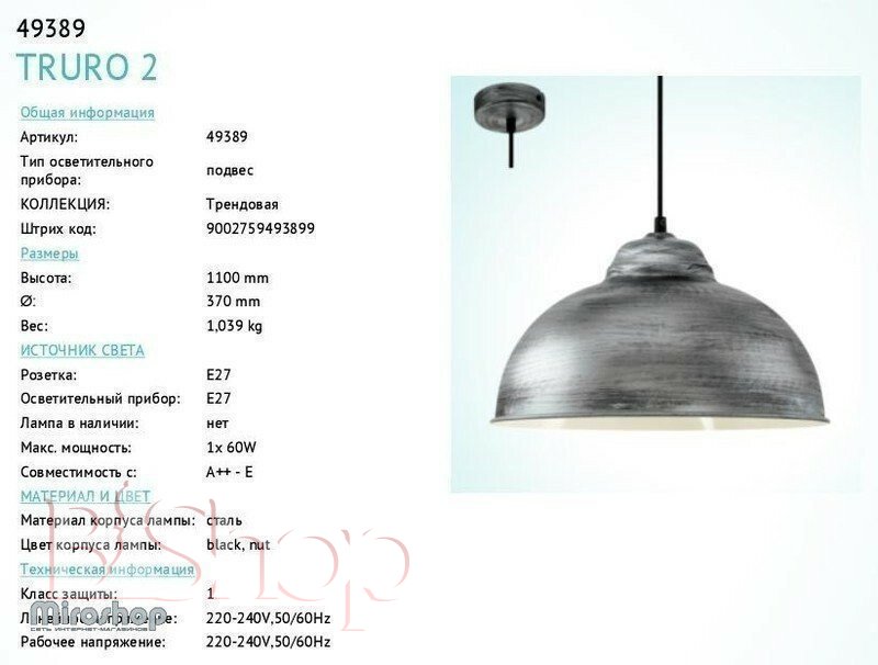 Кількість ламп: 1. Тип цоколя: E27. Висота (див): 110. Потужність лампи (Вт): 60. Діаметр (див): 37.