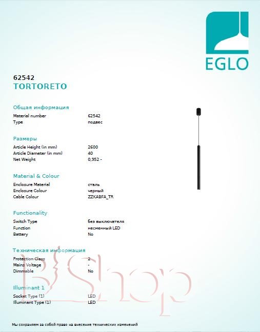 Кількість ламп: 1. Тип цоколя: LED. Висота (див): 260. Потужність лампи (Вт): 6. Діаметр (див): 4.