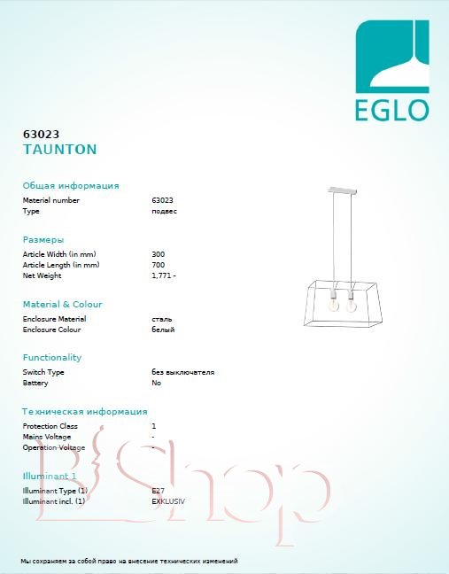 Кількість ламп: 2. Тип цоколя: E27. Висота (див): 235. Ширина (див): 30. Потужність лампи (Вт): 60. Довжина (див): 70.