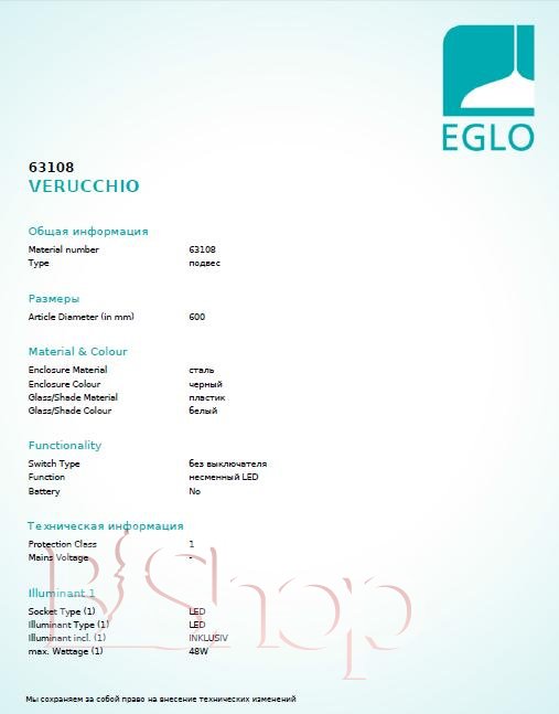 Підвісний світильник Eglo 63108 VERUCCHIO