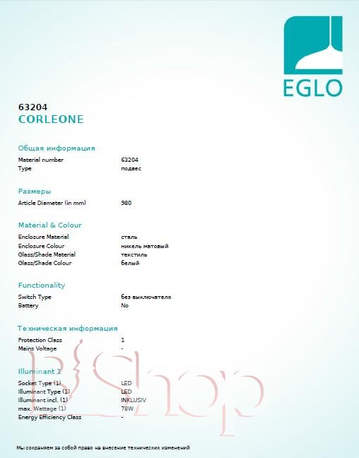Підвісний світильник Eglo 63204 CORLEONE