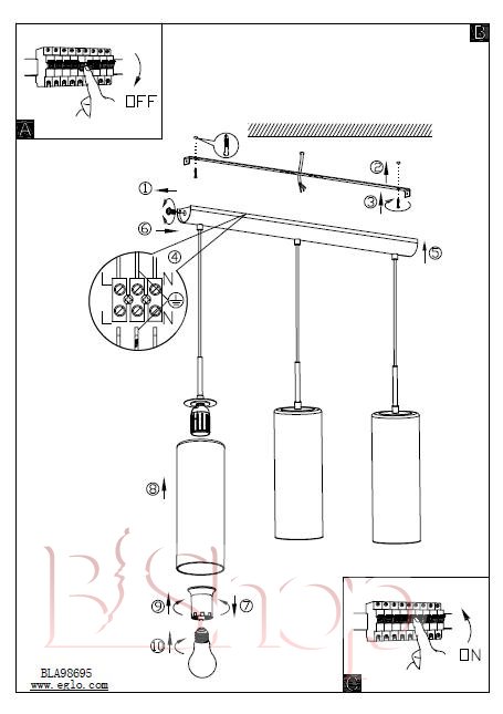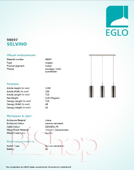 Кількість ламп: 3. Тип цоколя: E27. Висота (див): 110. Потужність лампи (Вт): 15. Діаметр (див): 10.